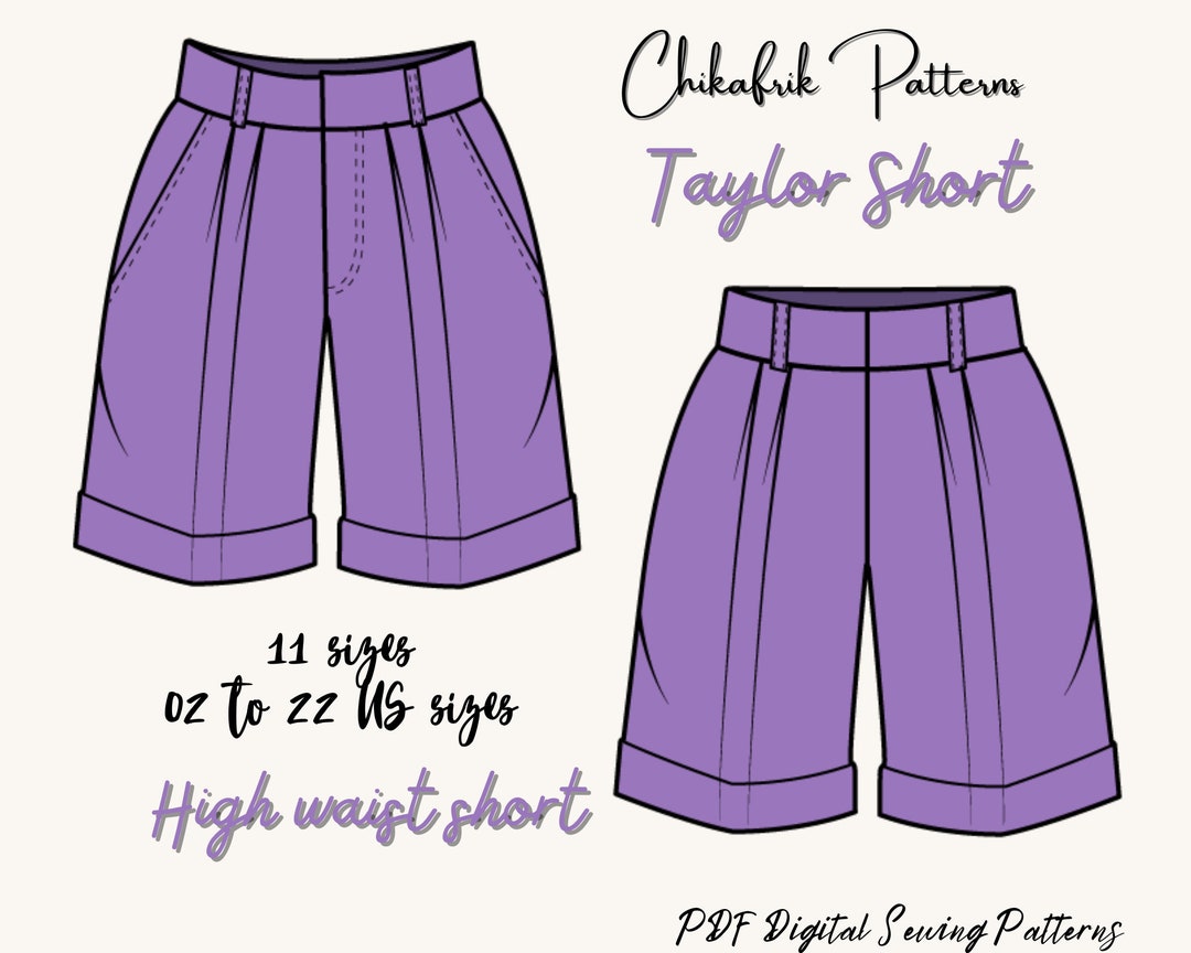 Taylor High Waist Short| Short Sewing Pattern| 10 Sizes XXS to XXL ...