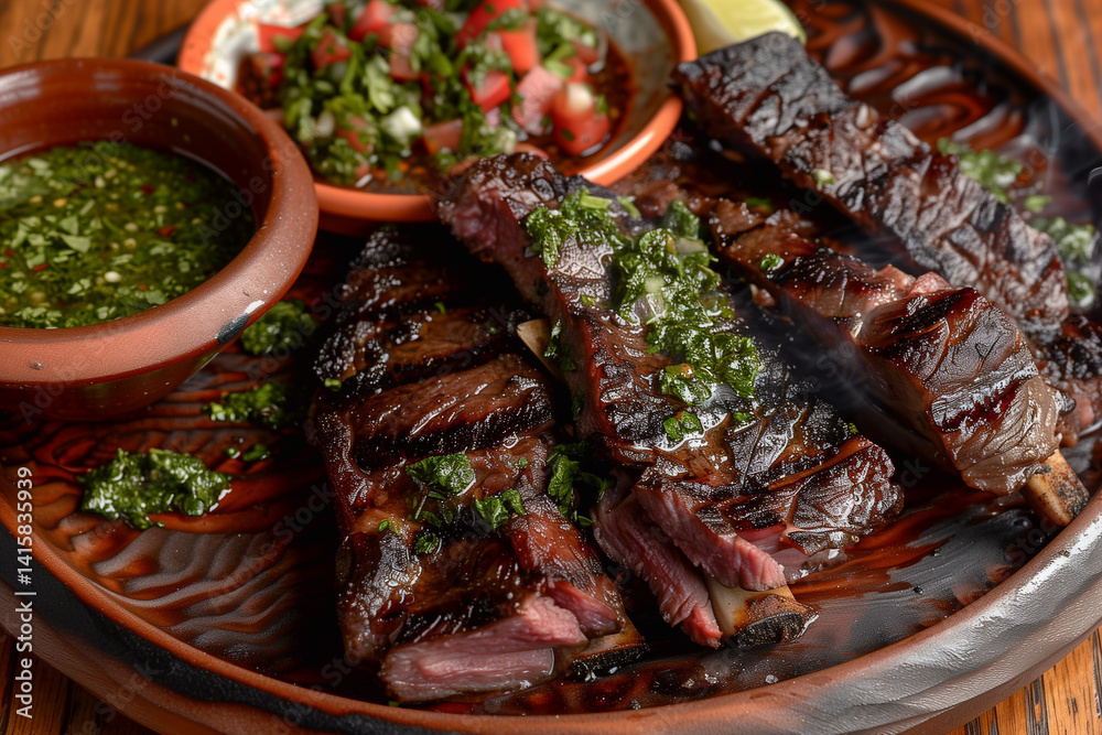 Grilled Beef Short Rib Argentinian Style Asado Steak with Chimichurri ...
