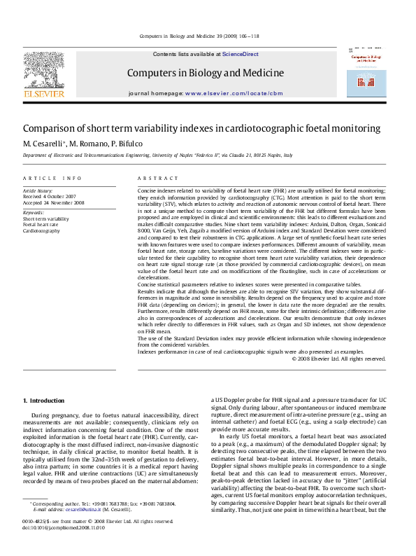 (PDF) Comparison of short term variability indexes in cardiotocographic ...