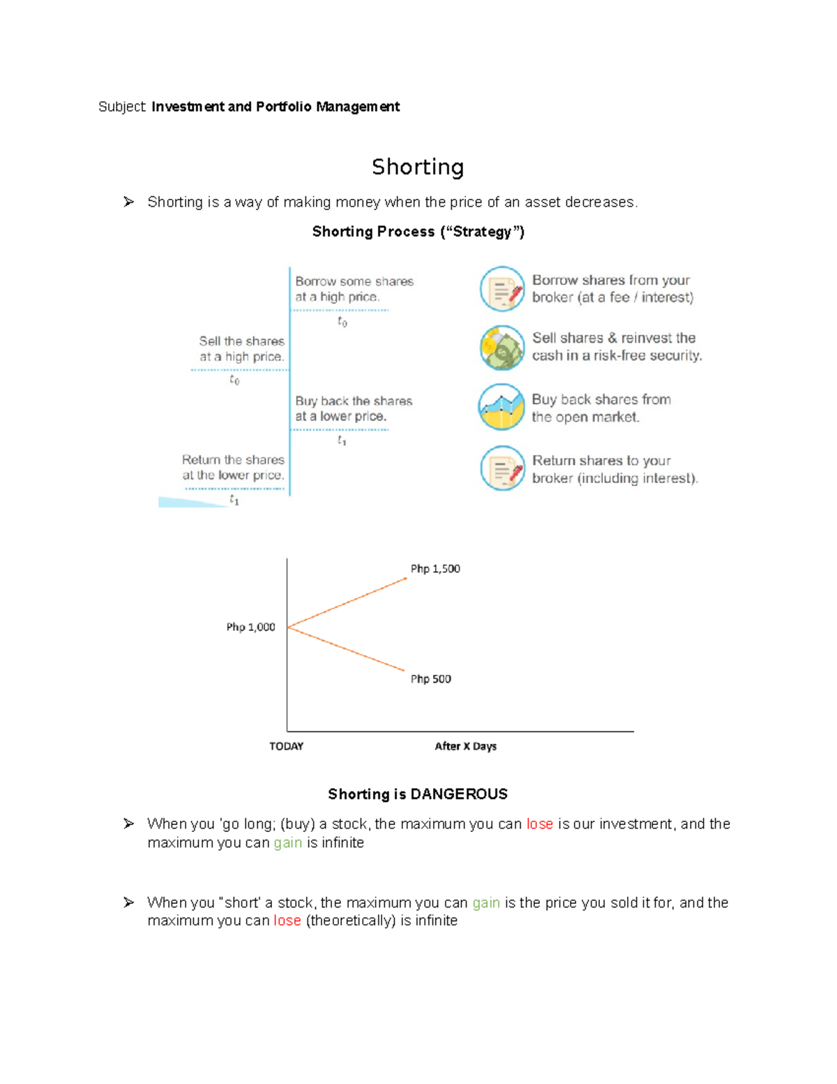 Shorting & Calculating Stock of Return - Subject: Investment and ...