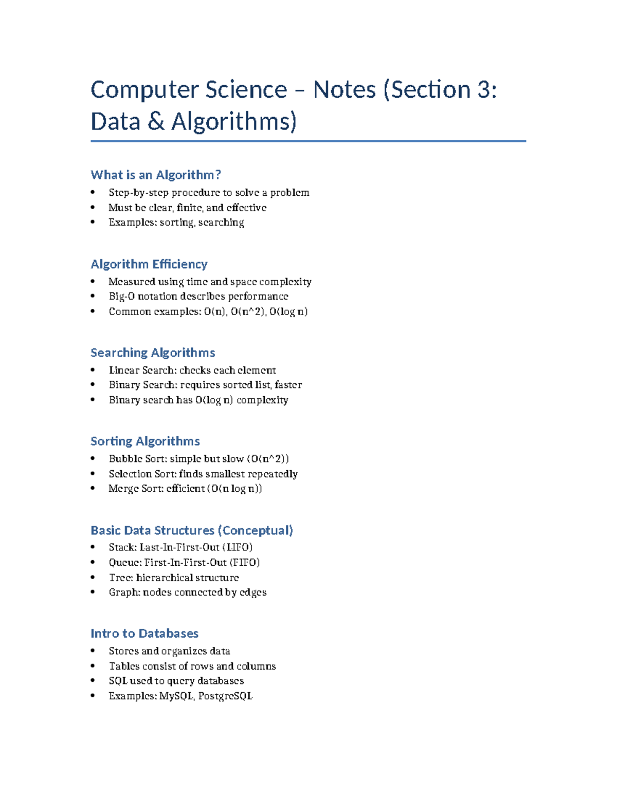 CS1010 Section 3: Data Algorithms and Efficiency Notes - Studocu