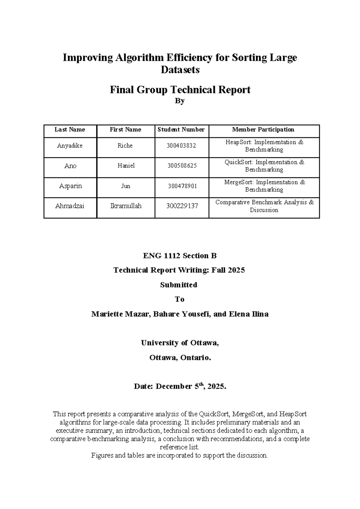 ENG 3004 Final Group Technical Report: Benchmarking Sorting Algorithms ...