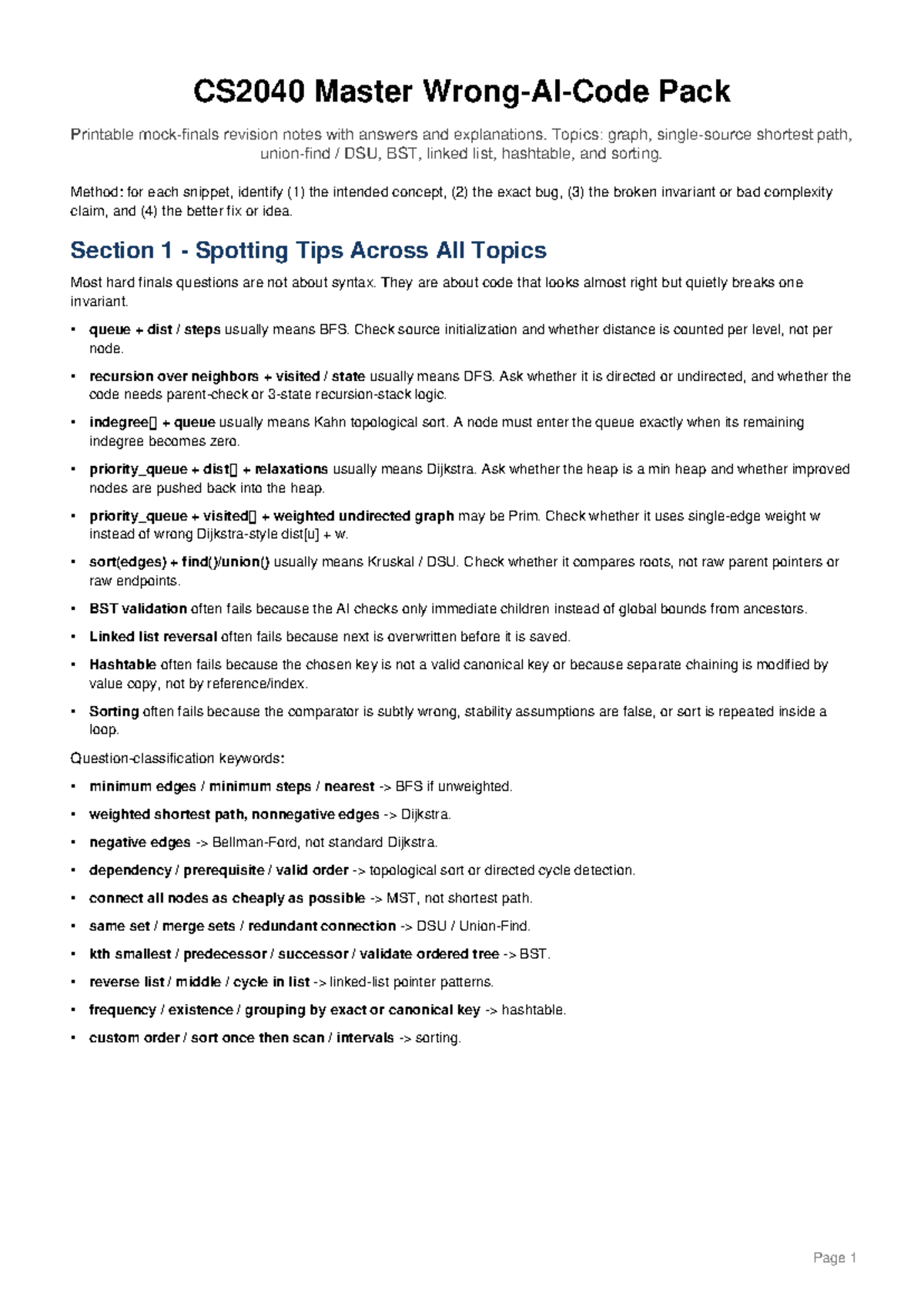 CS2040 Master Pack: Revision Notes on Graphs, DSU, BST, and Sorting ...