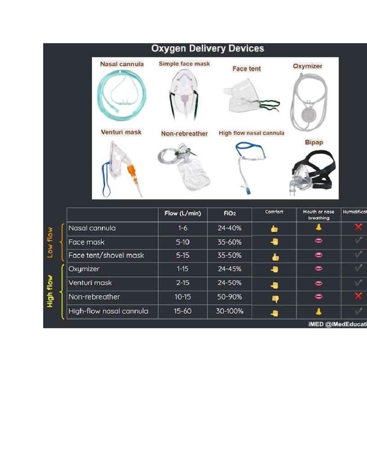 Oxygen Delivery Devices - Comparison Low Flow: • Nasal ... | Nurse ...