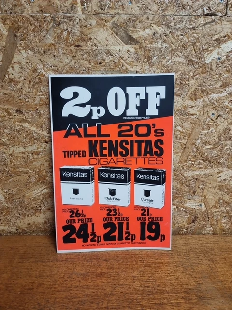 KENSITAS CIGARETTE ADVERTISING Show Card Sign Co Op Shop Tobbaco Fine ...