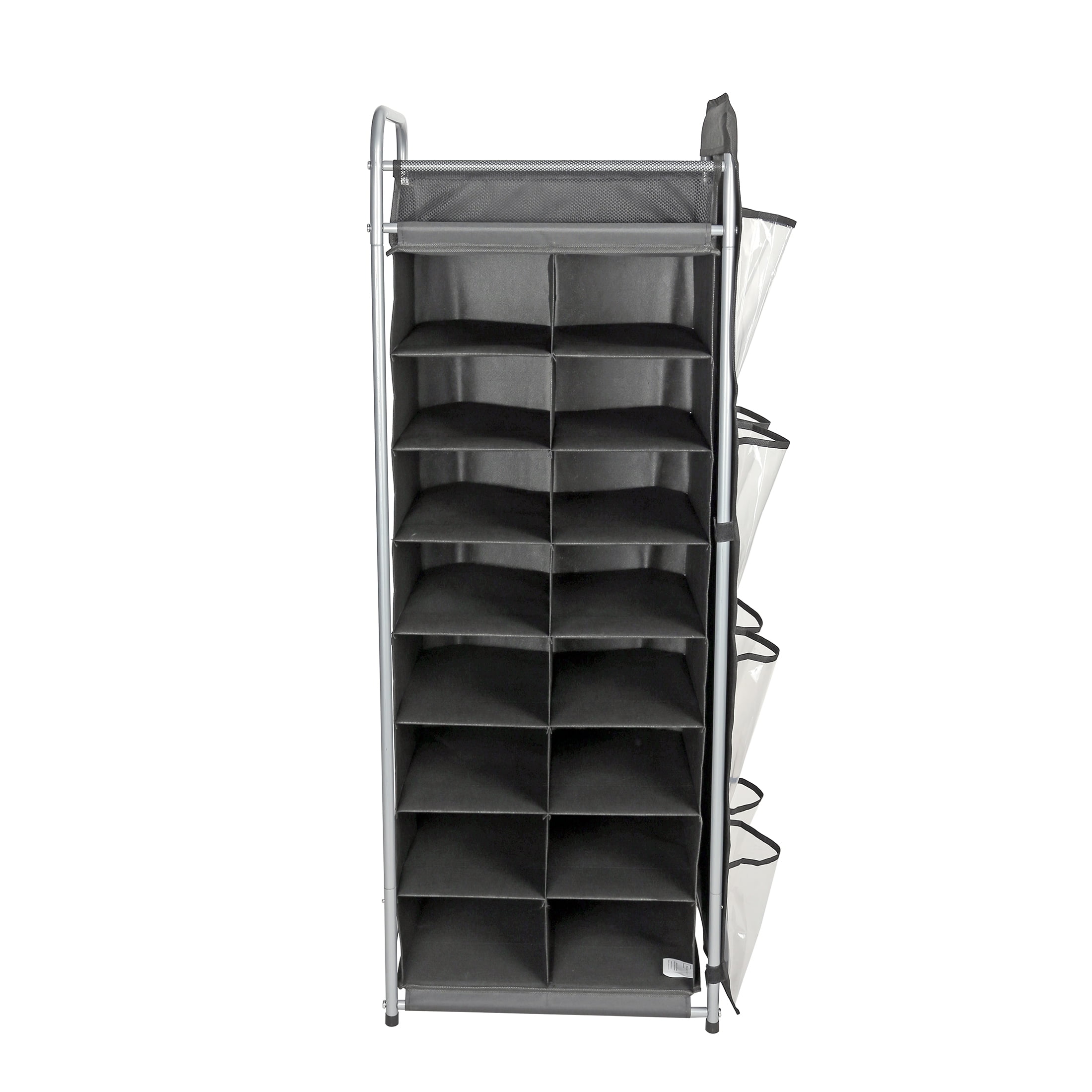 Mainstays 8 Tier, 20 Pair Shoe Cubbies with Hanging Pocket, Rich Black ...