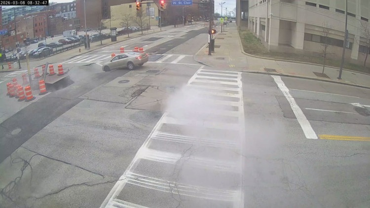 Video shows moment massive sinkhole opened in downtown Cleveland ...