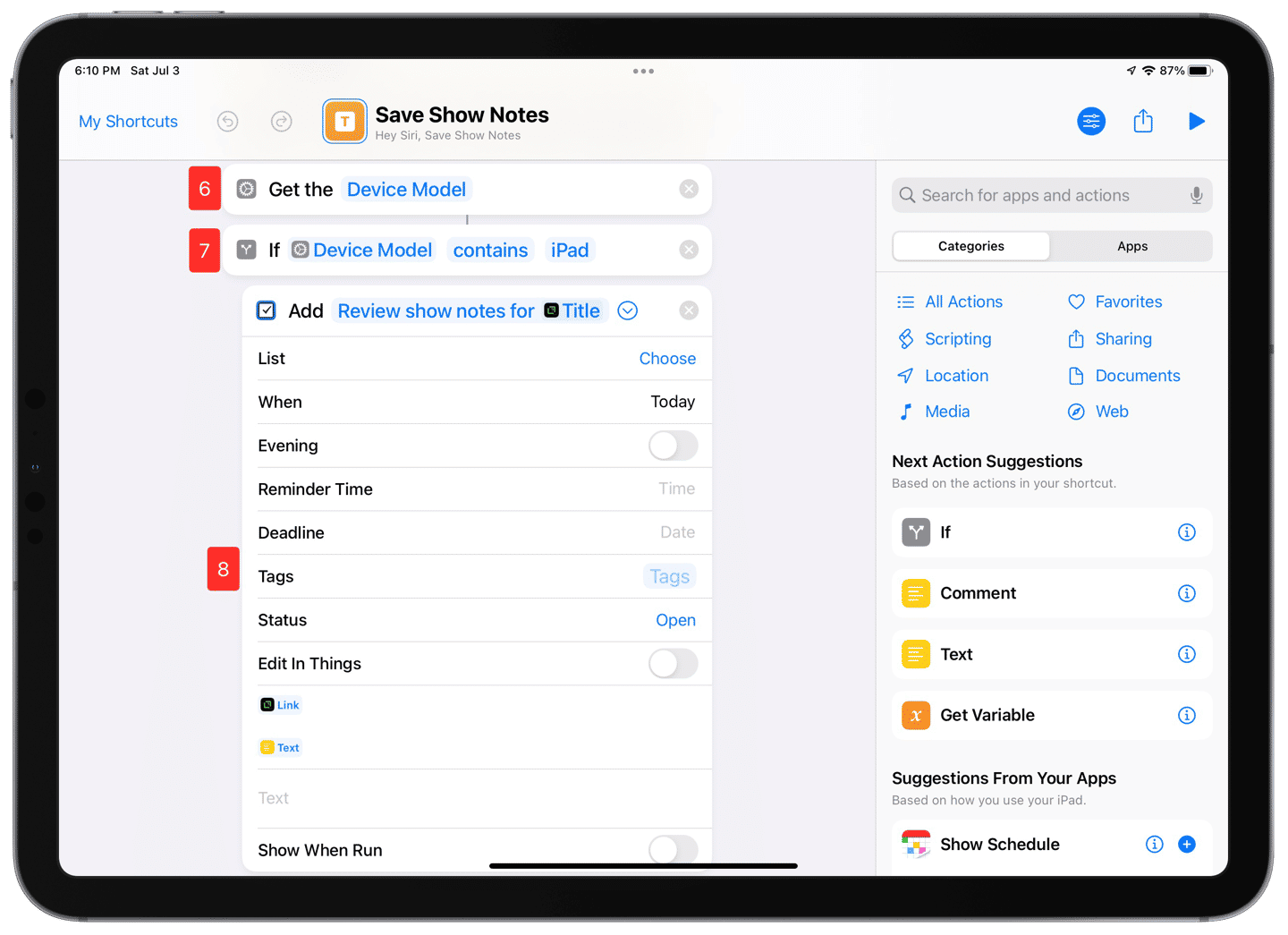 Shortcuts Tips: Saving Podcast Show Notes for Later - HeyDingus