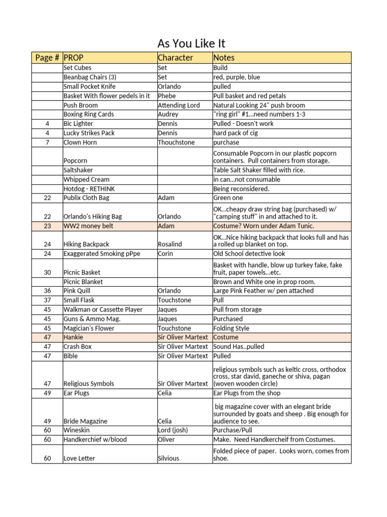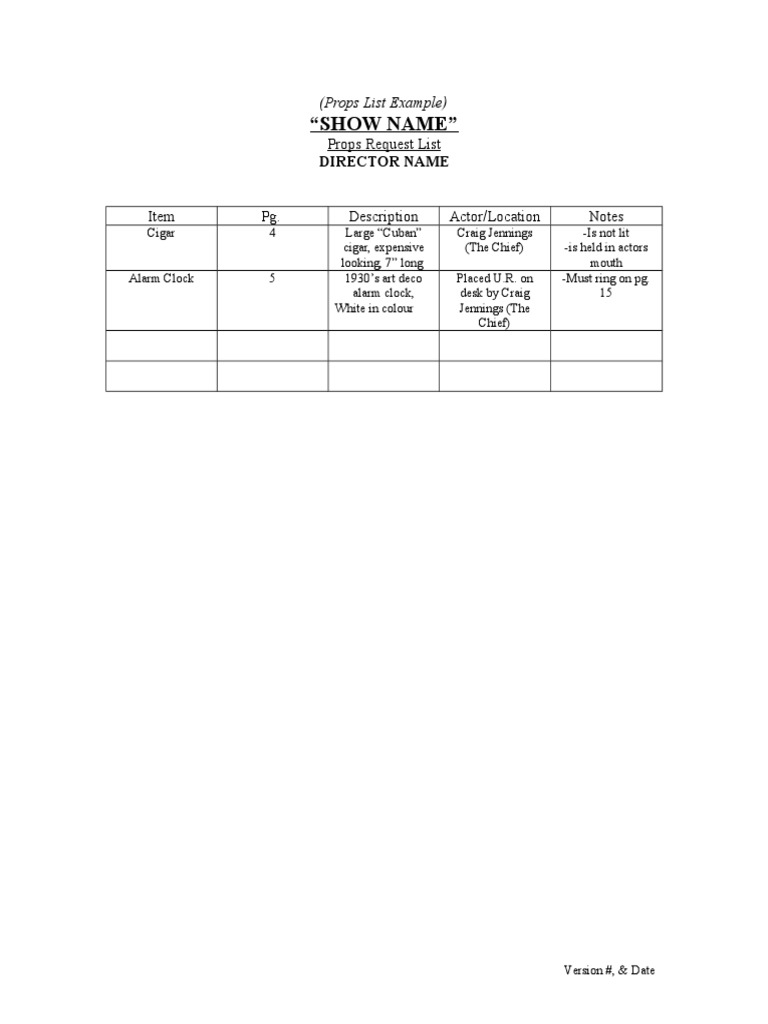 Prop List [template] by J Rep's Theater and Film Resources | TPT