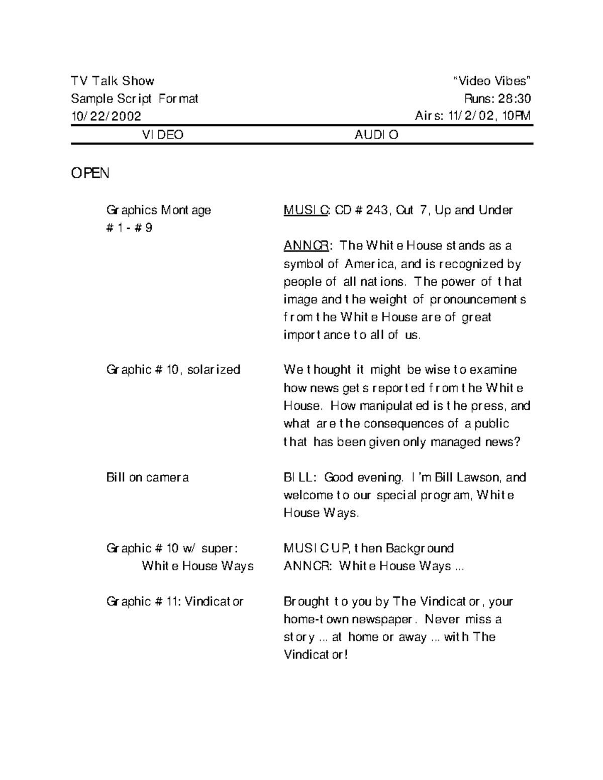 Blockscript - Answer - TV Talk Show “Video Vibes” Sample Script Format ...