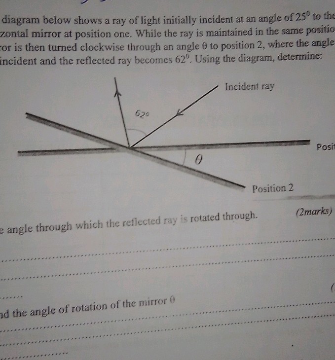 The diagram shows a ray of light striking a plane mirror. What is the ...