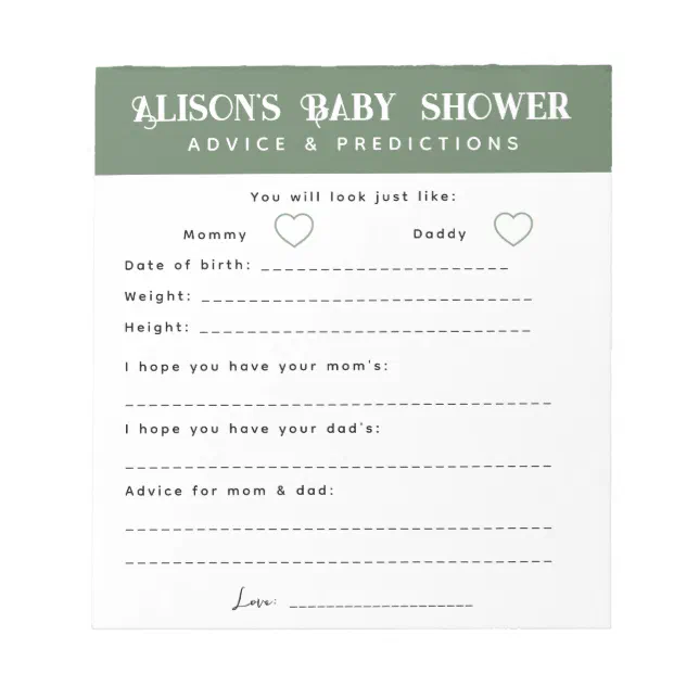 Modern Sage Advice and Predictions Baby Shower Notepad | Zazzle