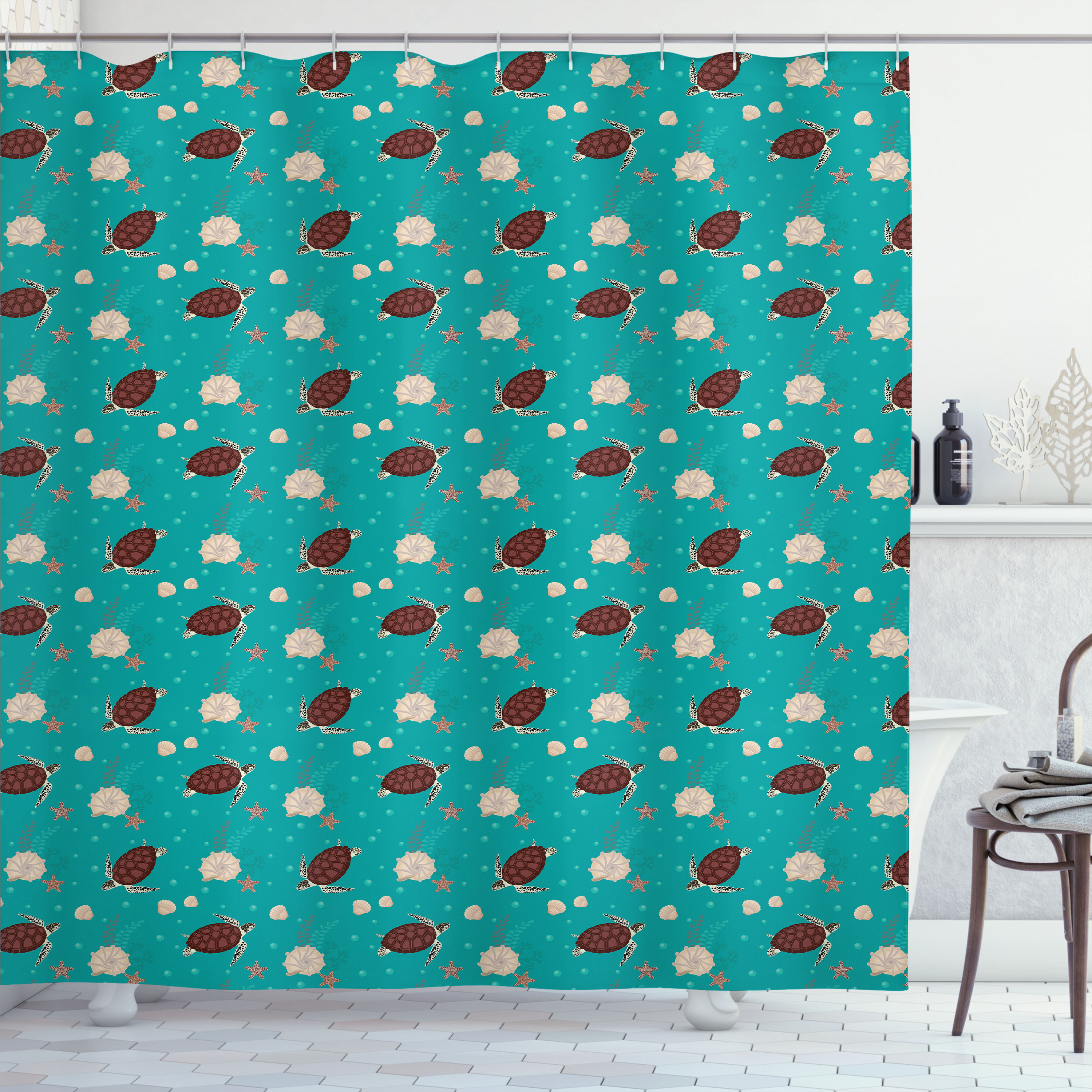 Sea Turtles Shower Curtain, Ocean Themed Underwater Coral Teal Turtles ...