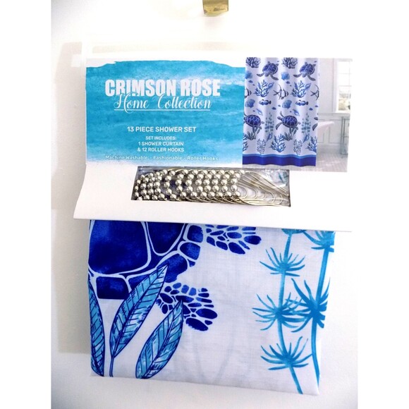 Blue Coastal Turtle Shower Curtain Set with Hook Washable Cloth ...