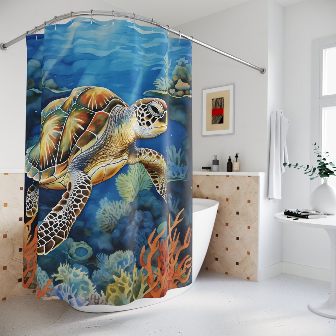 Sea Turtle Shower Curtain, Sea Turtle Bathroom Decor, Housewarming Gift ...