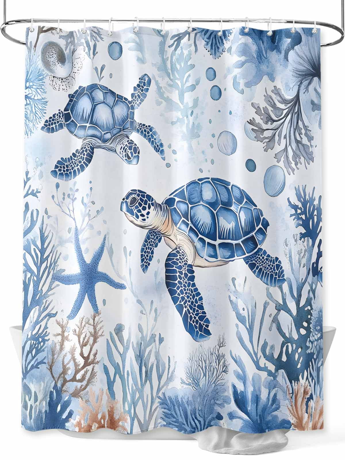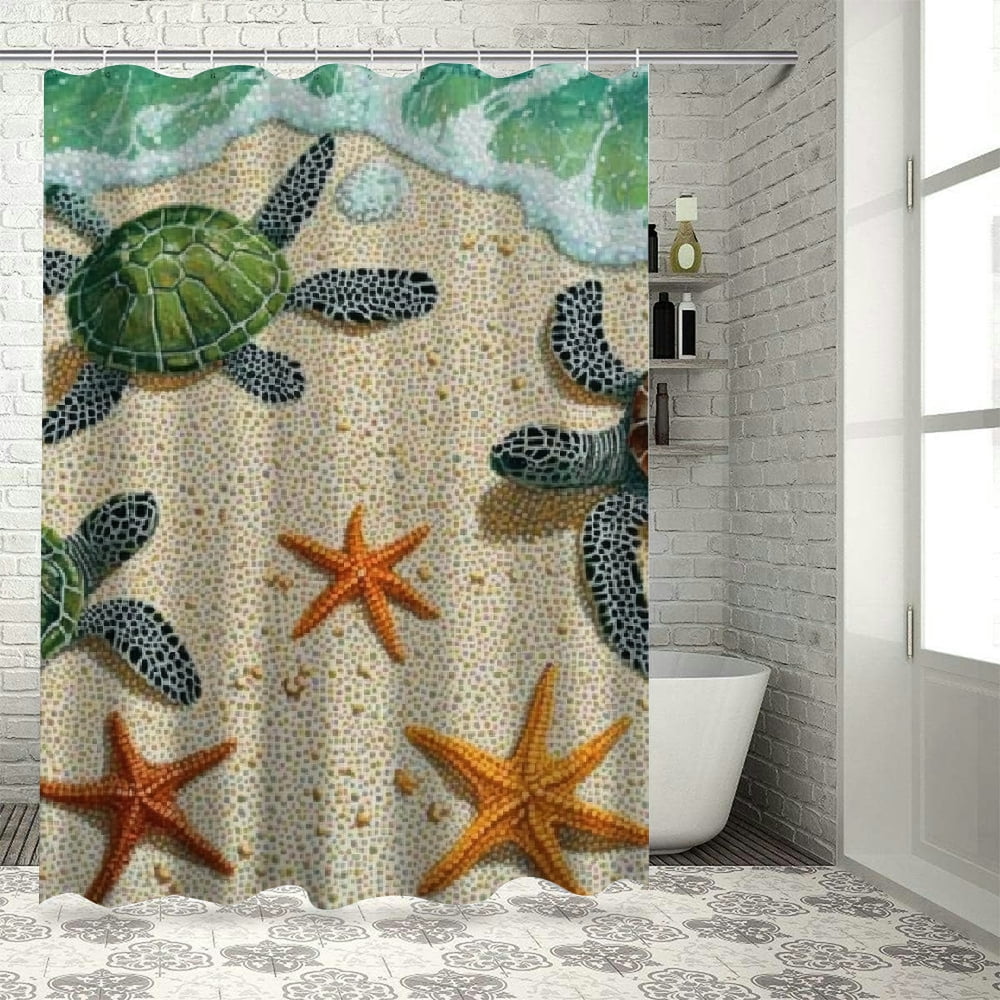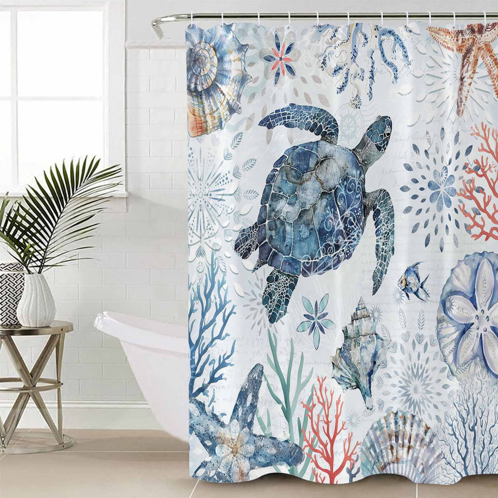 Coastal Sea Turtle Shower Curtain, Waterproof Shower Curtains for ...