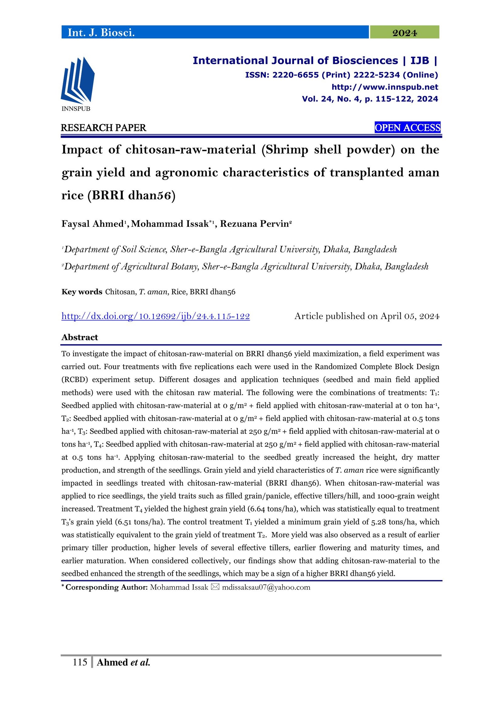 Impact of chitosan-raw-material (Shrimp shell powder) on the grain ...