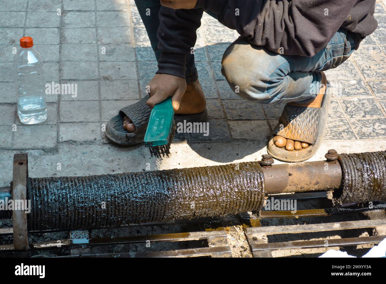 Rolling shutter spring unit repair and cleaning & brushing Stock Photo ...