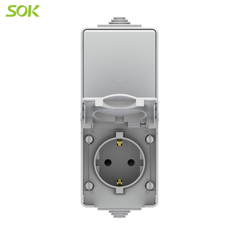 1 Gang 2 Way Wall Switch with Shutter and Schuko Outlet | Merhein