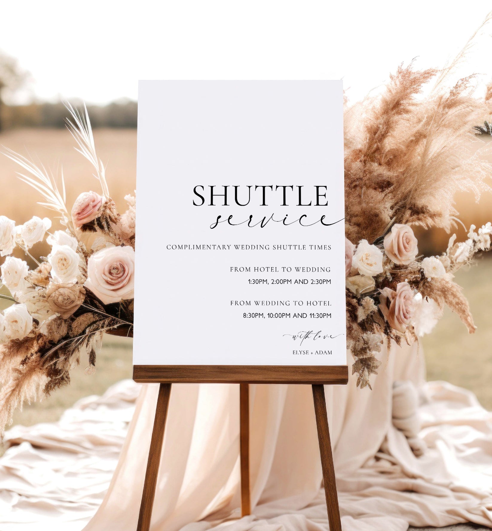 Elegant Wedding Shuttle Sign Template, Printable Wedding Shuttle ...