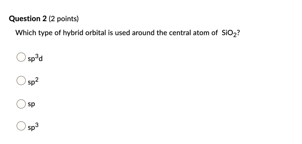 SOLVED:Question 2 (2 points) Which type of hybrid orbital is used ...