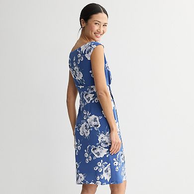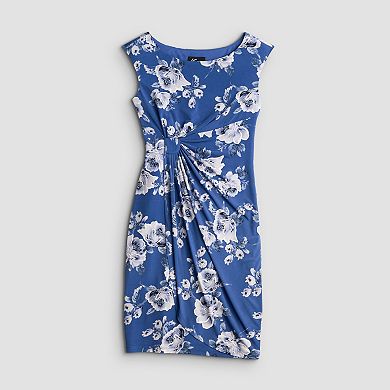 Women's Studio Connection Printed Cap Sleeve Side Drape Dress