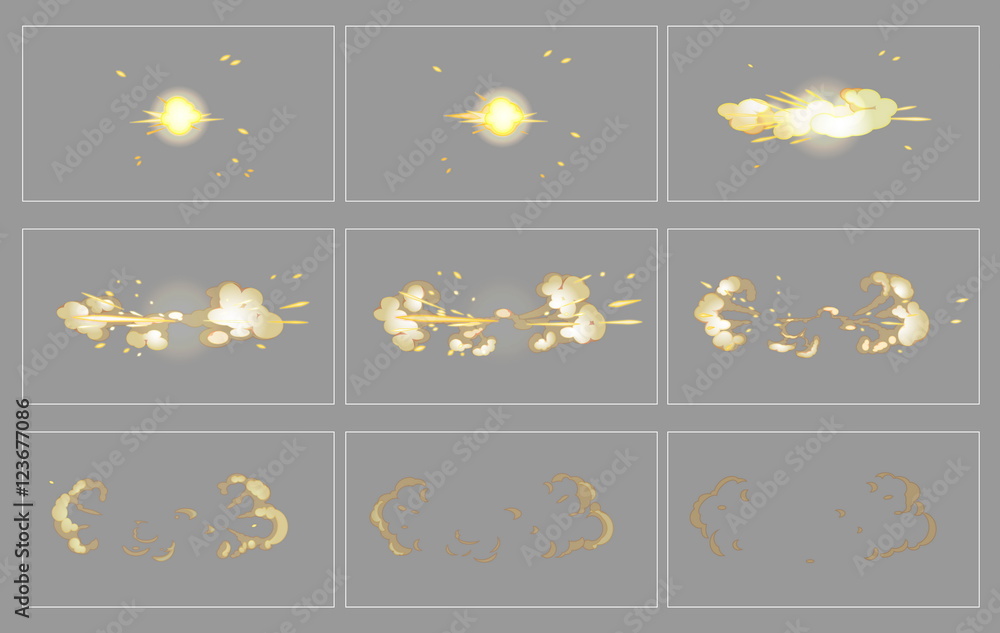 Fog side explosion special effect animation frames Stock Vector | Adobe ...