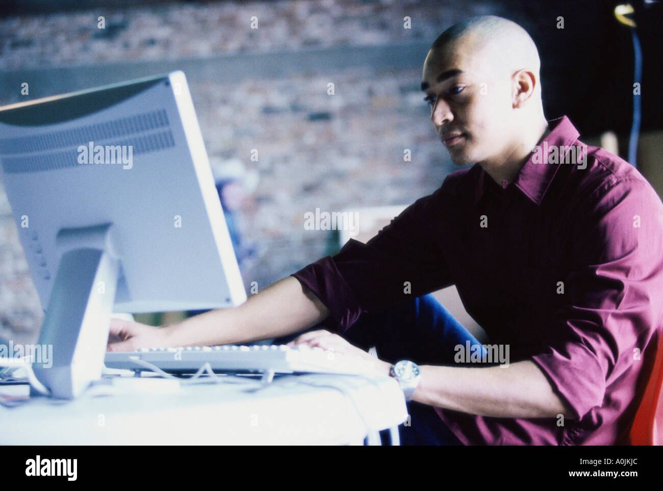 Side profile of man working on computer Stock Photo - Alamy