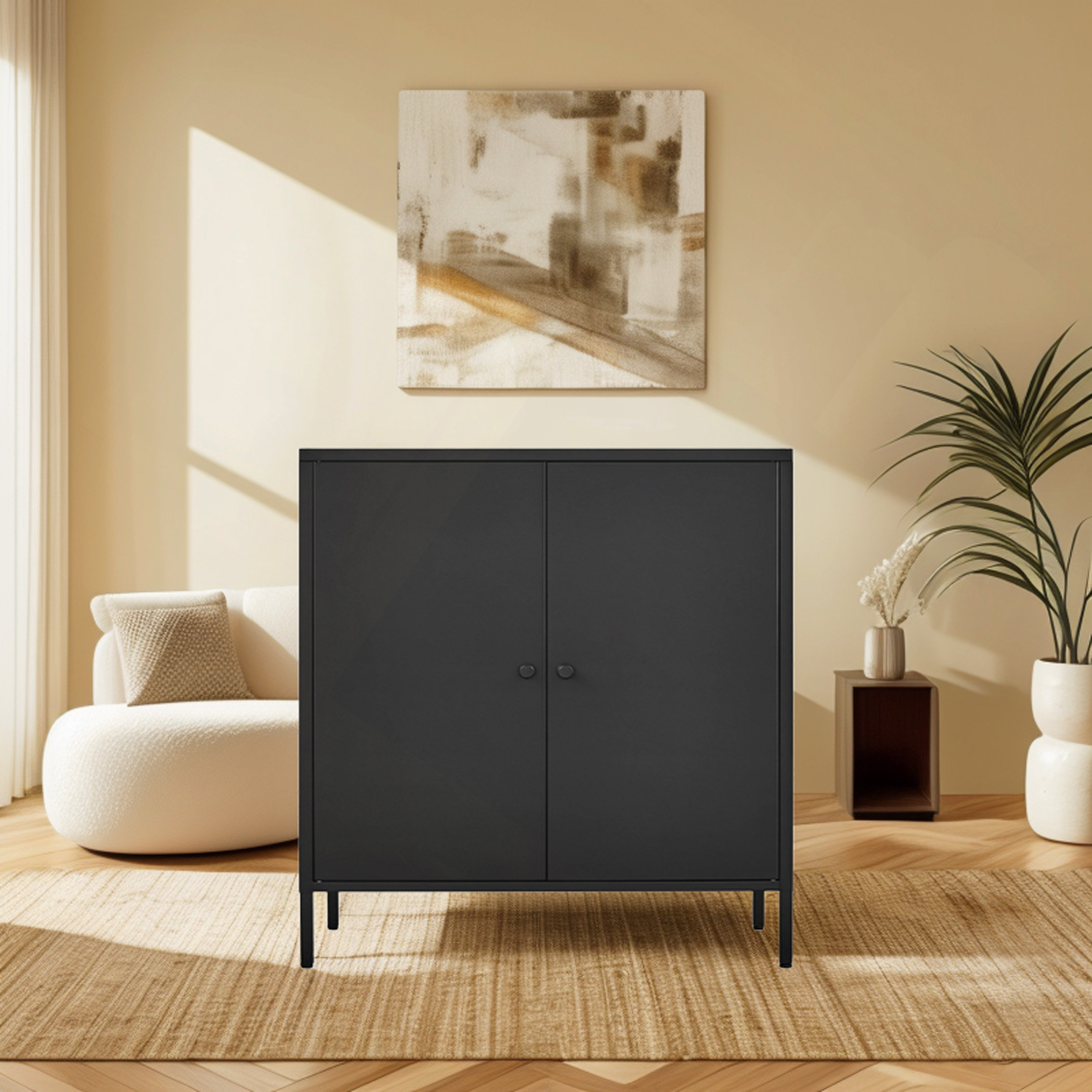 Ebern Designs Steel Double-Door Metal Sideboard Buffet Cabinet With ...