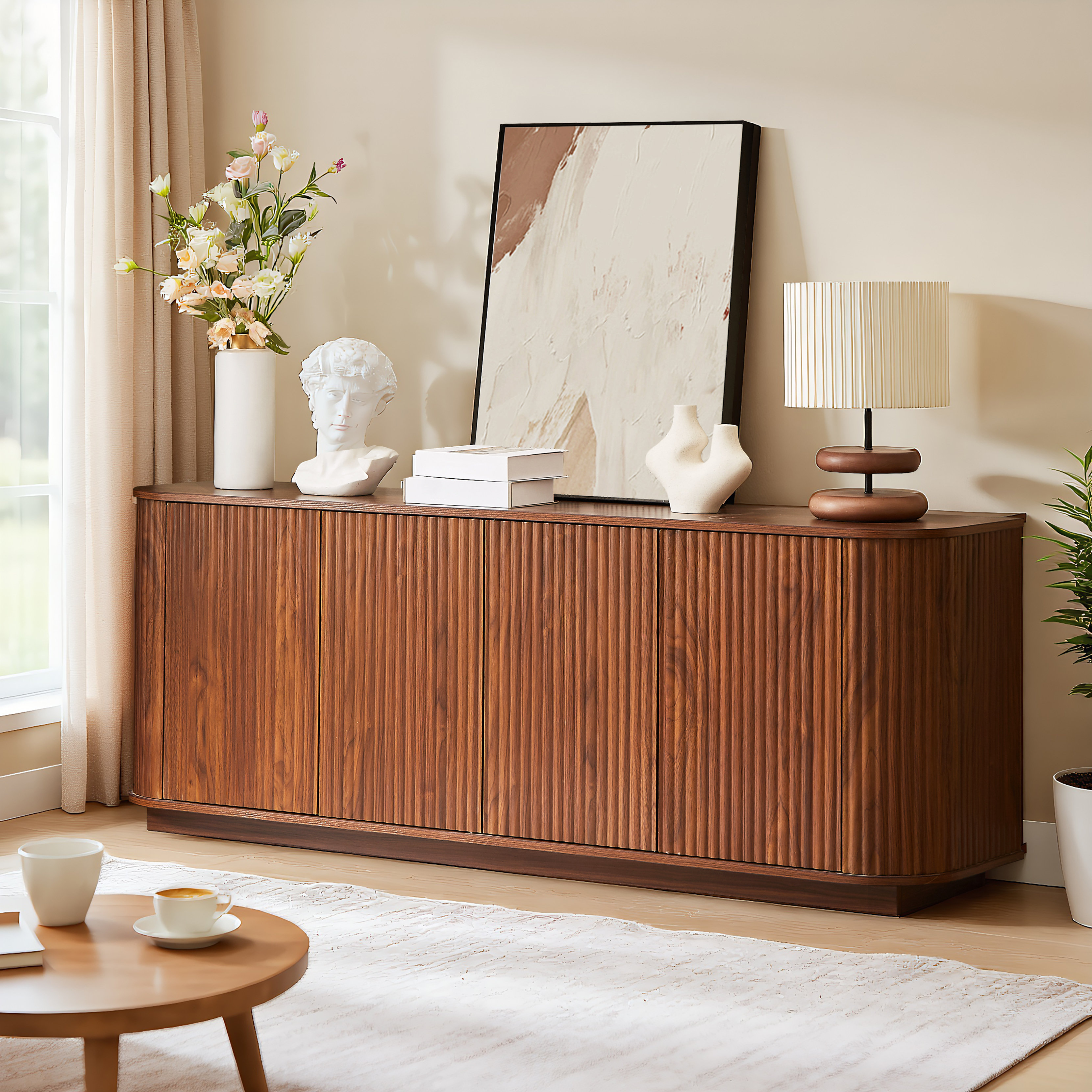 Wooden Fluted Cabinet, Freestanding Multi-Function Storage Buffet with ...