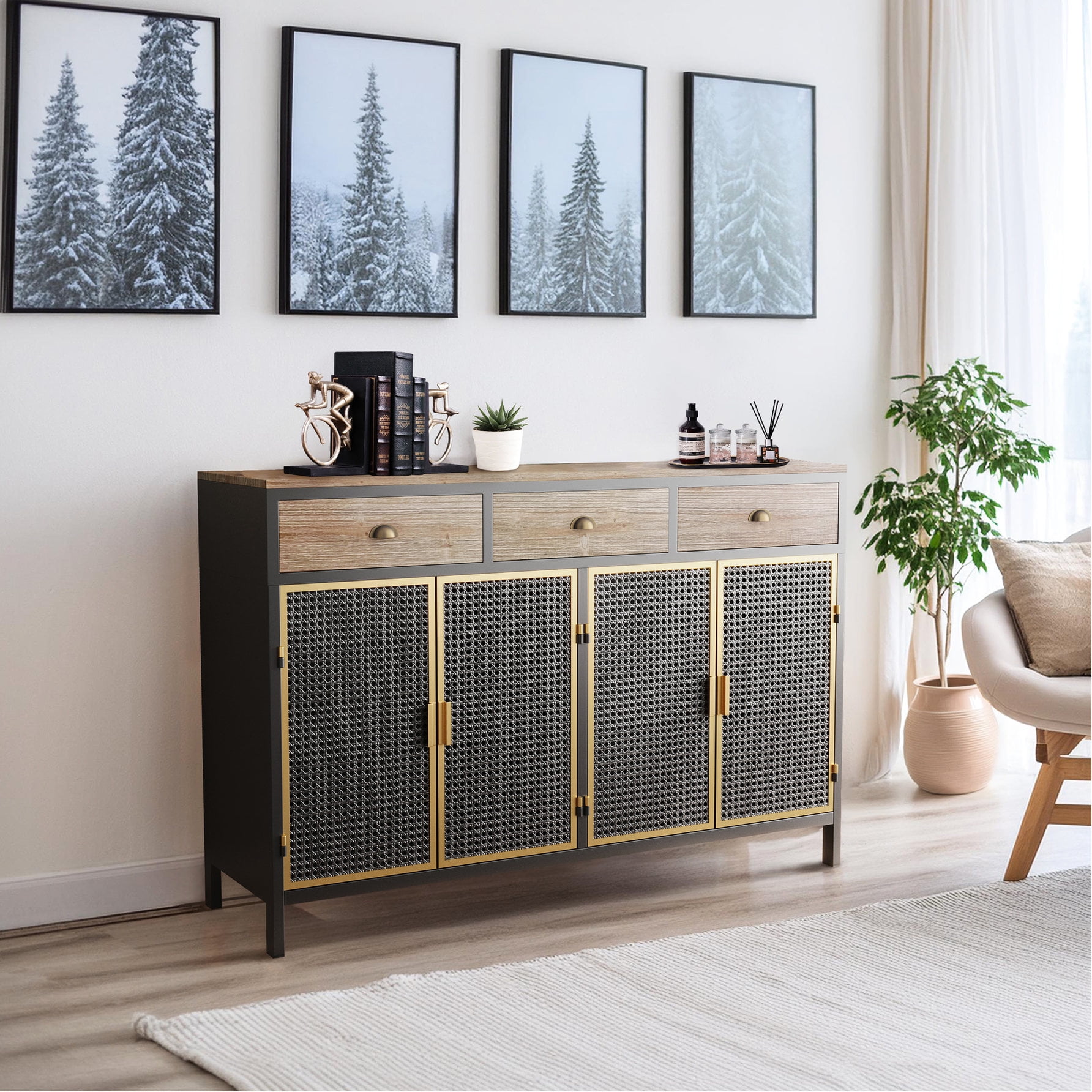 Contemporary Wooden Sideboard Cabinet with Drawers and Adjustable ...