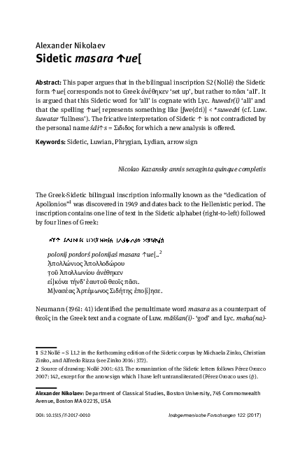 (PDF) Origins of the Sidetic Script