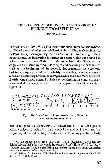 (PDF) The Recently Discovered Greek-Sidetic Bilingue from Seleucia