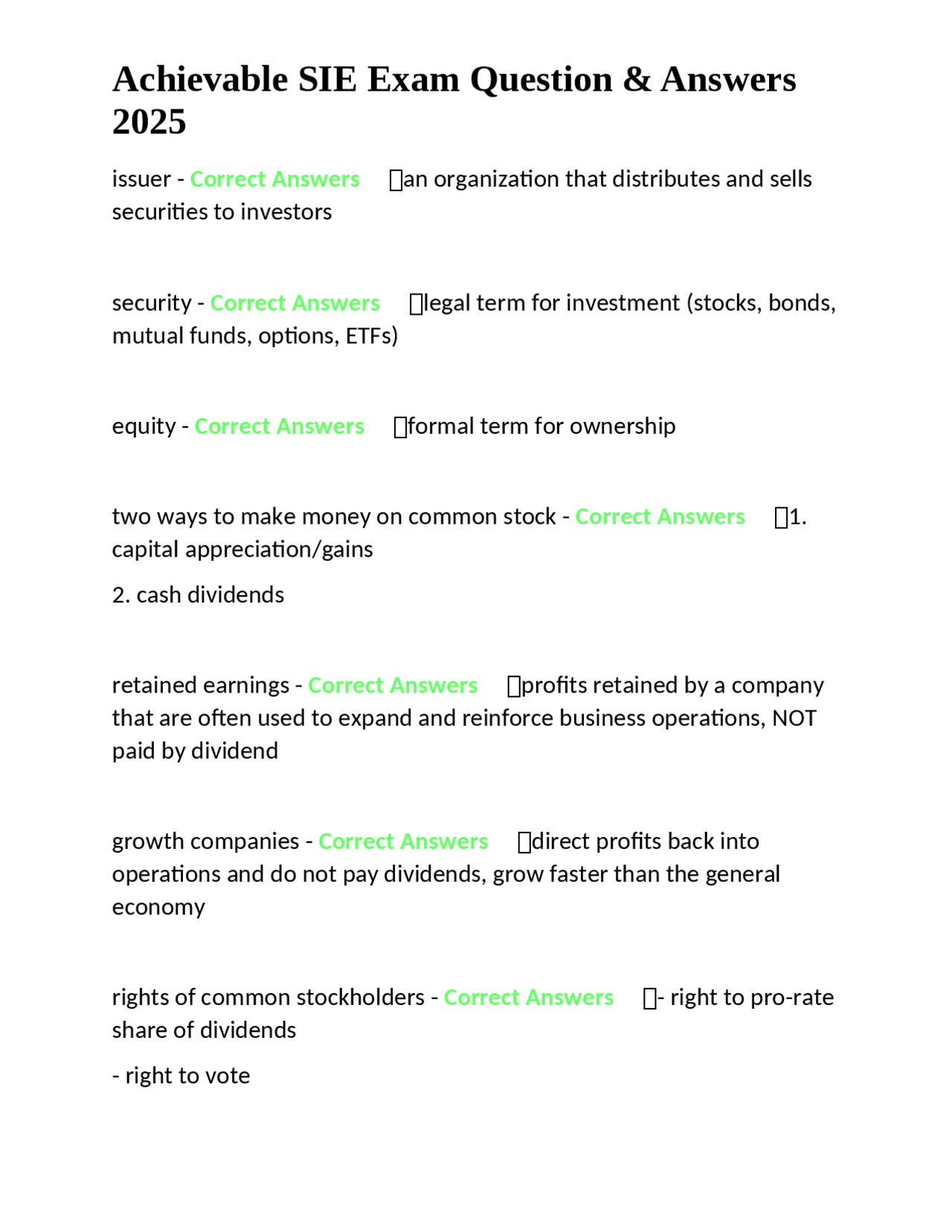 75 SIE Practice Exam Questions with Correct Answers - Browsegrades