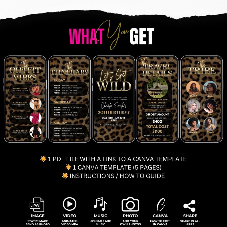 Animated Girls Weekend Trip Invitation, Digital Lets Get Wild Safari ...
