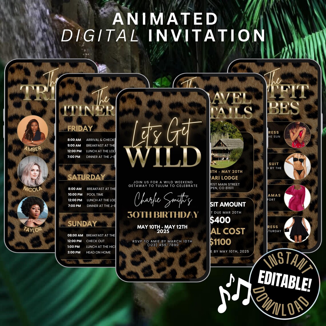 Digital Girls Weekend Trip Invitation Animated, Lets Get Wild Tiger ...