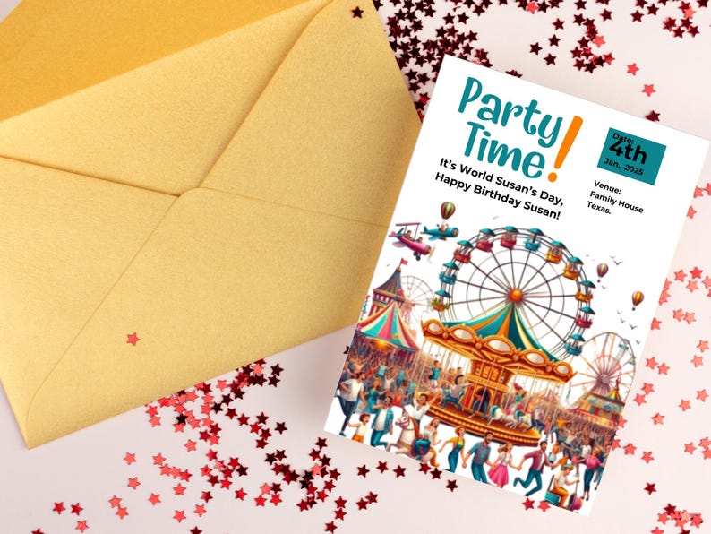 Editable Party Time Birthday Card, Birthday Card Template, Birthday ...