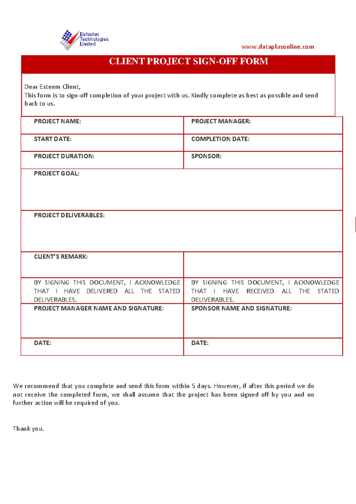 Client Project Sign-Off Form - Dataplus Technologies Limited printable ...