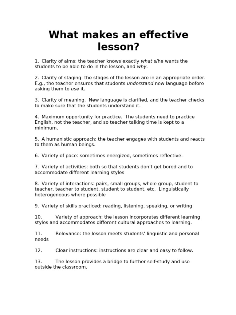 What Makes A Good Lesson | PDF