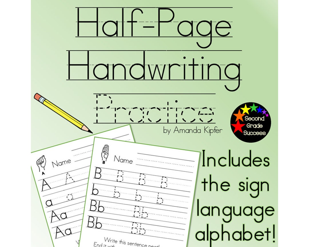 Half Page Handwriting Practice: Manuscript Print With Sign Language - Etsy