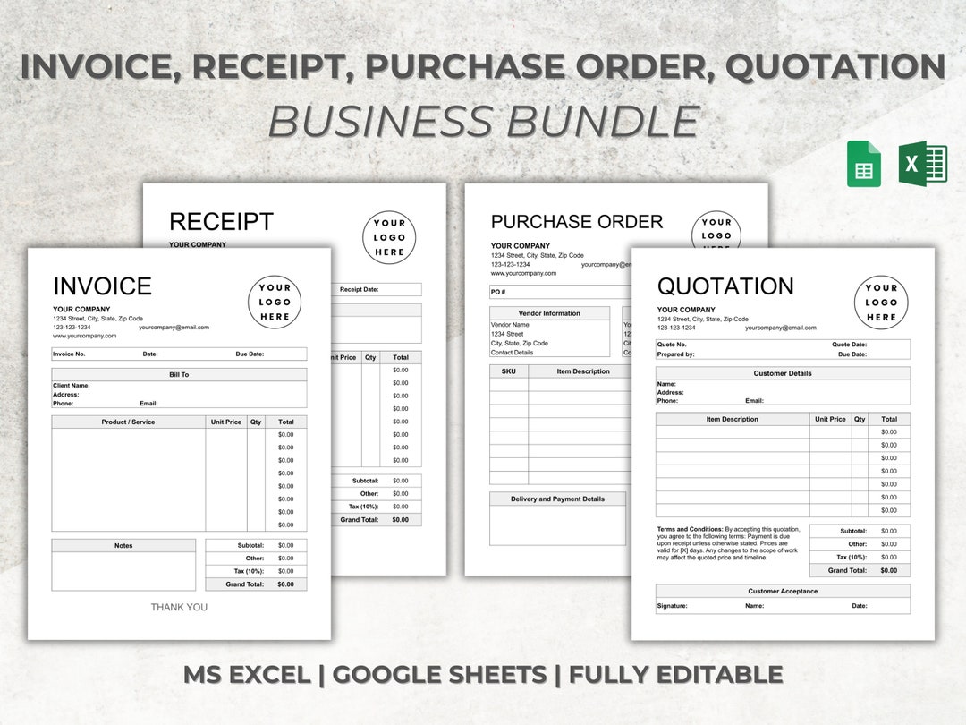 Invoice, Receipt, Purchase Order Form, Price Quotation, Excel/google ...