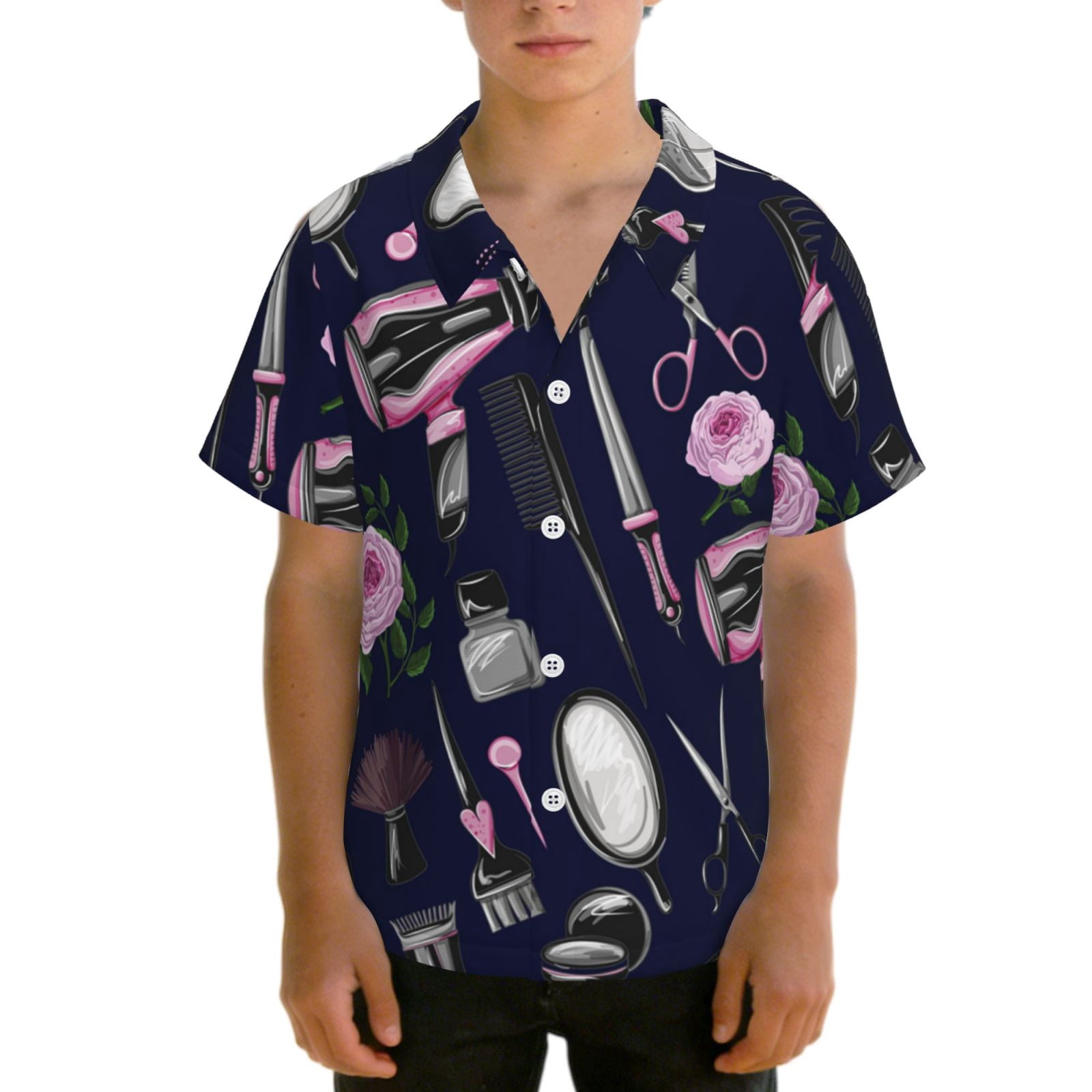 Boys Short Sleeve Summer Beach Tops Teenage Kids Button Down Hawaiian ...