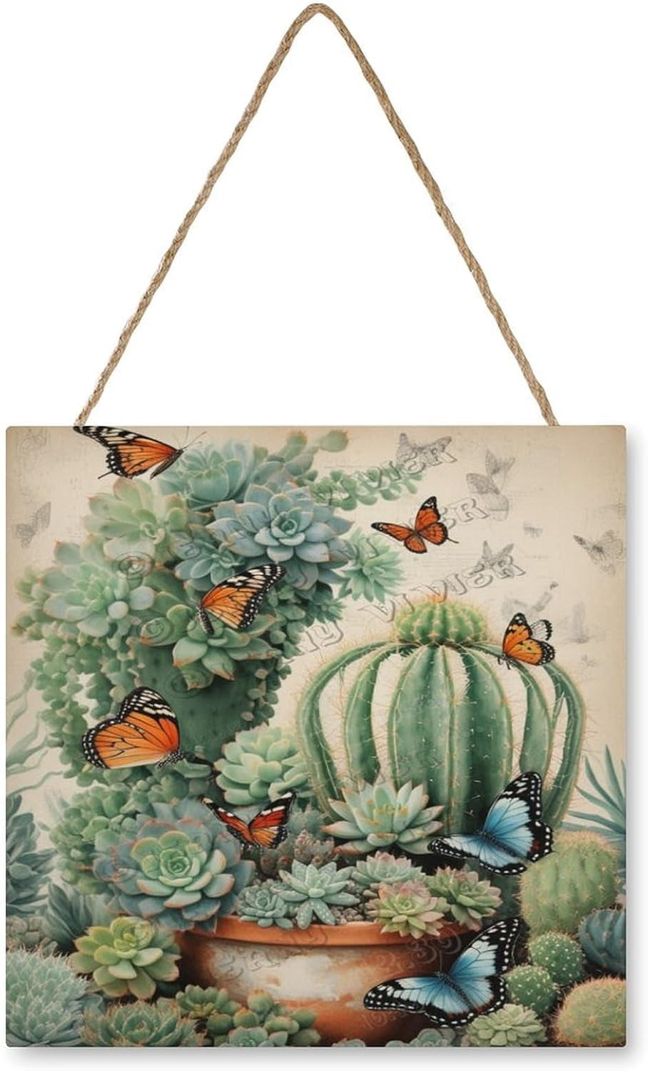 12x12 Wooden Hanging Sign Featuring a Beautiful Cactus Design - Ideal ...