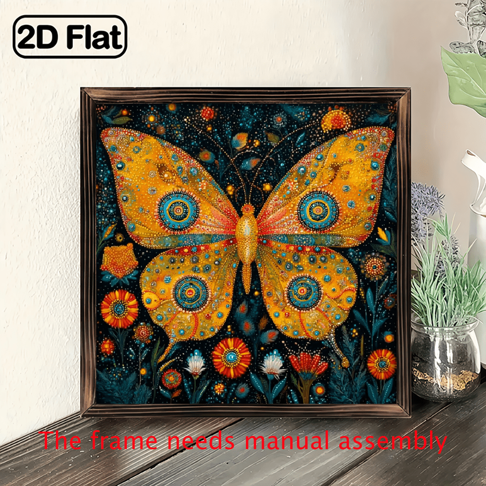1pc Vintage Butterfly Wooden Framed Wall Art - 8x8 Inch Recycled Wood ...