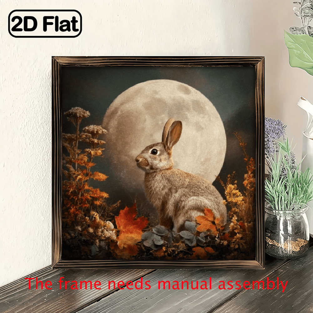 2D Flat, 1pc Vintage-Inspired Wall Art Classic Rabbit Looking at a Full ...