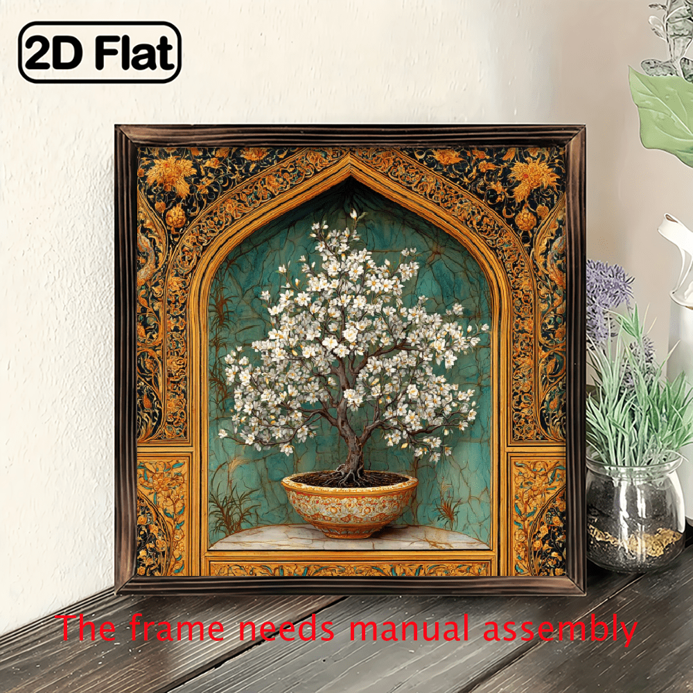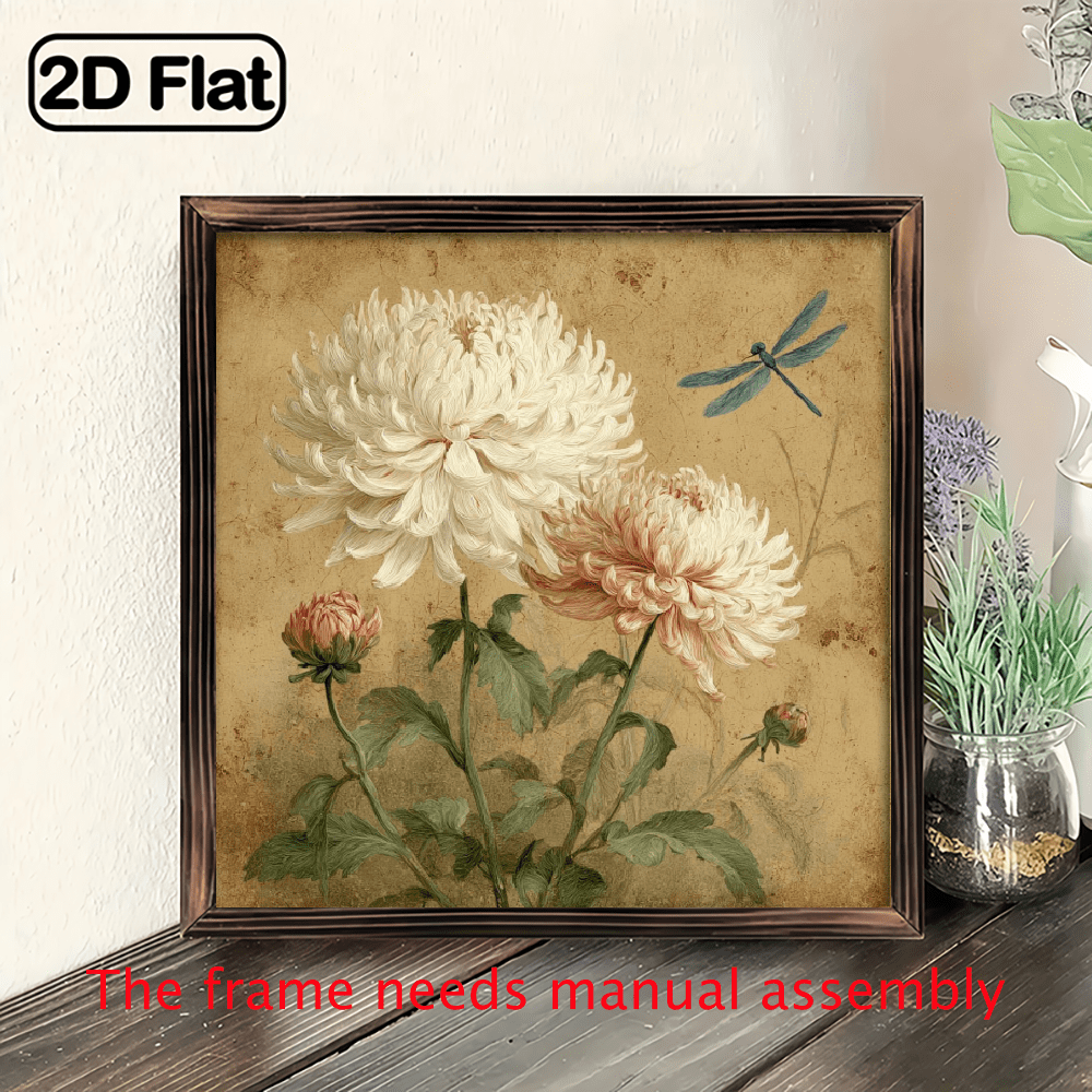 2D Flat, 8x8 Inch Rustic Wood Framed Wall Art - Floral Design, Reusable ...