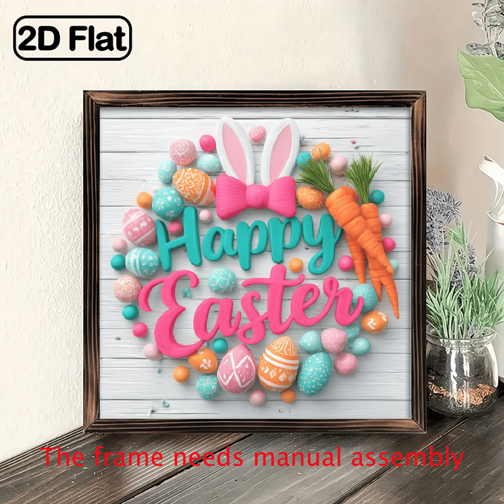 2D Flat Metal Sign, Happy Easter Round Wall Art with Colorful Eggs ...