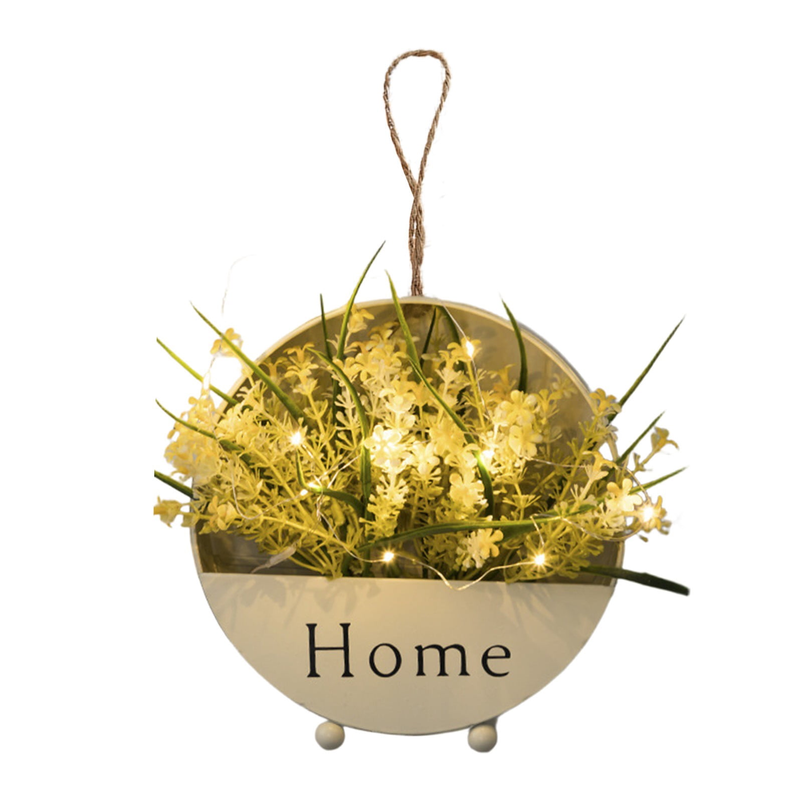 Artificial Flower Wall Decor, LED Lighted Metal Hanging Planter, Home ...