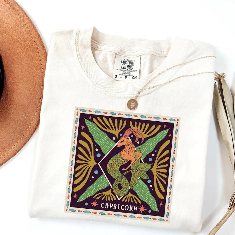 Capricorn Zodiac Retro Graphic Tee Celestial Sea Goat Astrology Sign ...