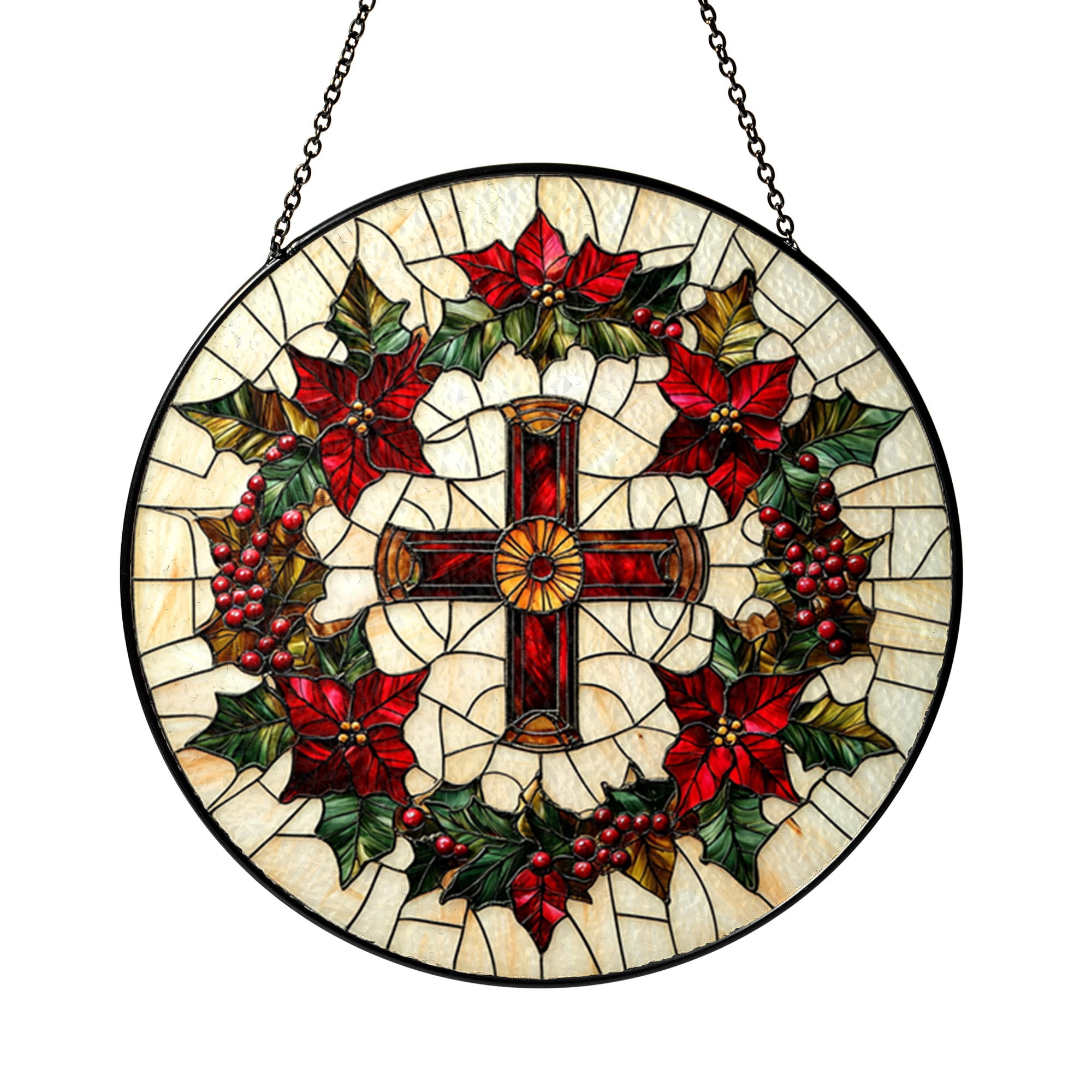 Red Poinsettia Cross Stained Glass Round Design – Perfect for ...